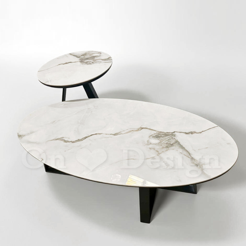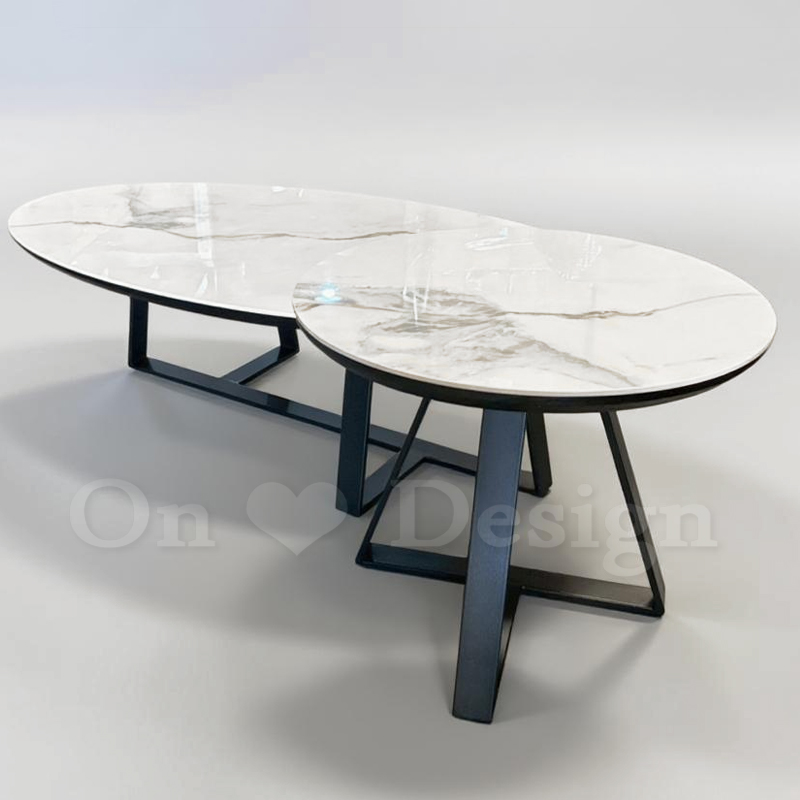 美式咖啡桌 大理石紋 兩件式 岩板 錐形 傳聲筒 黑色 錐形茶几-70CM