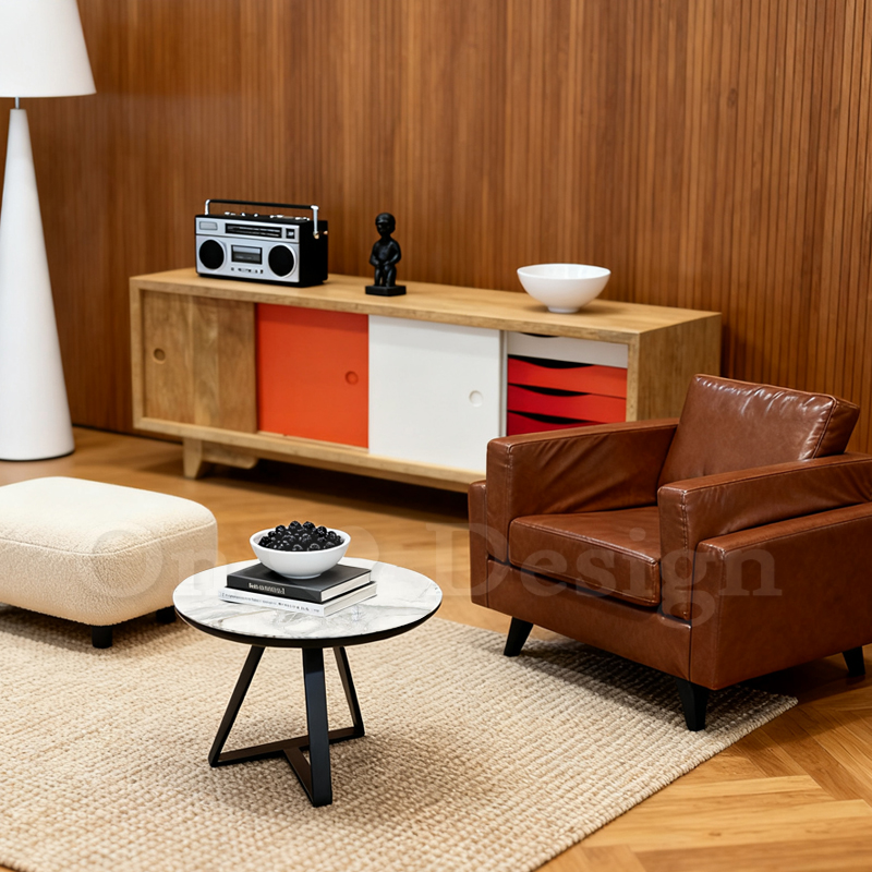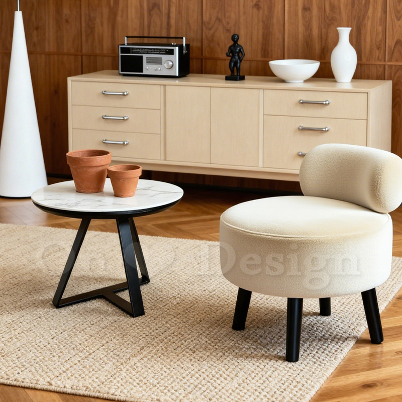 美式 奢華風 大理石紋 客廳 咖啡桌 岩板 三角 白色 圓形 邊几-53CM