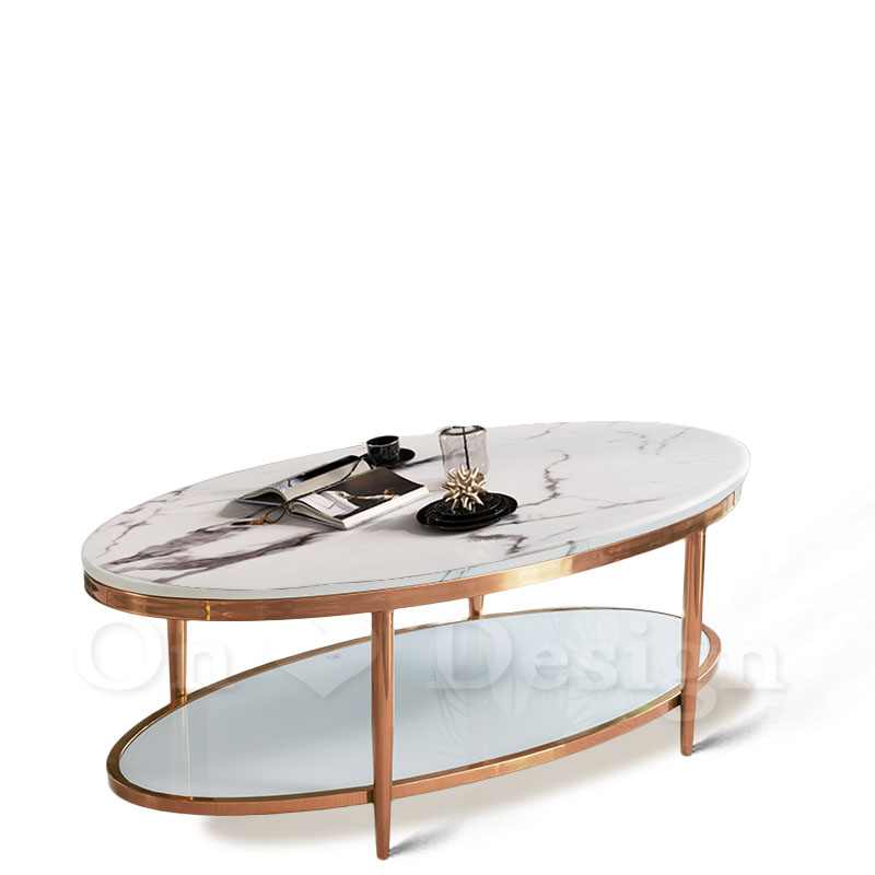 大理石 雙層 玫瑰金 橢圓形 茶几-130CM
