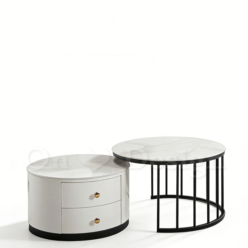凱米 兩件式 帶抽屜 茶几 - Ø 70CM