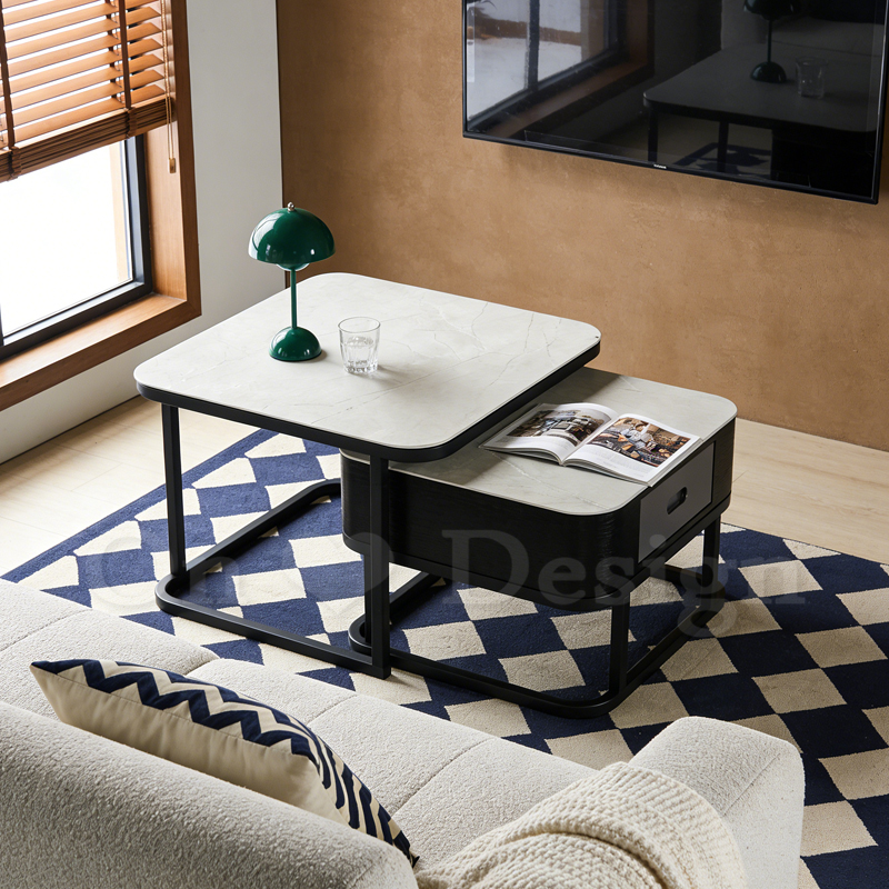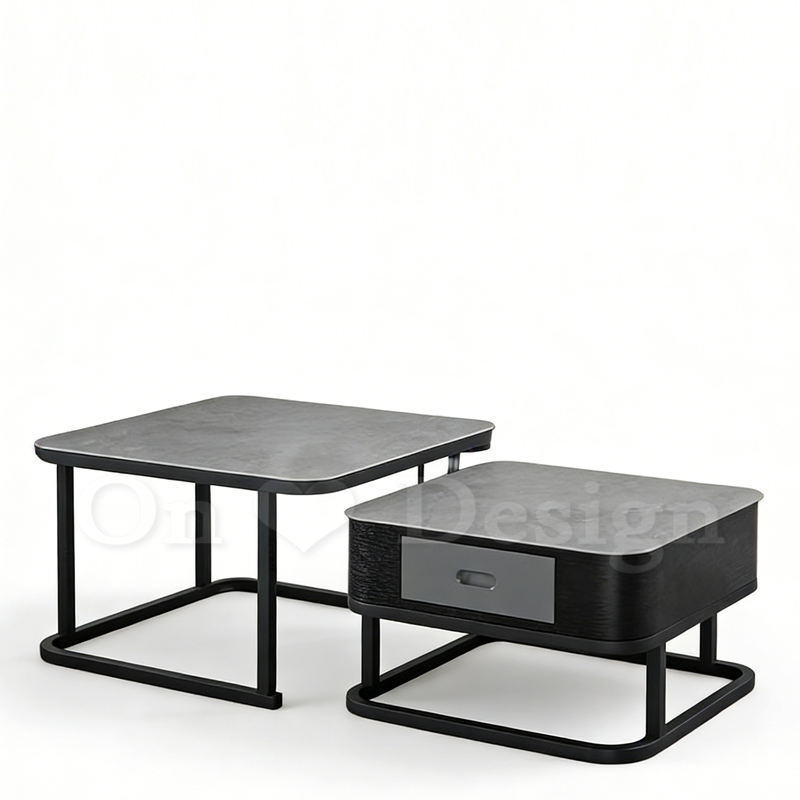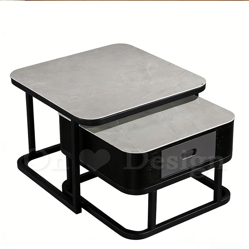 亞瑟 兩件式 方形 岩板強化玻璃 帶抽屜 茶几