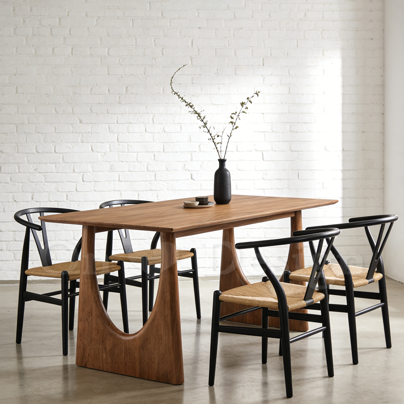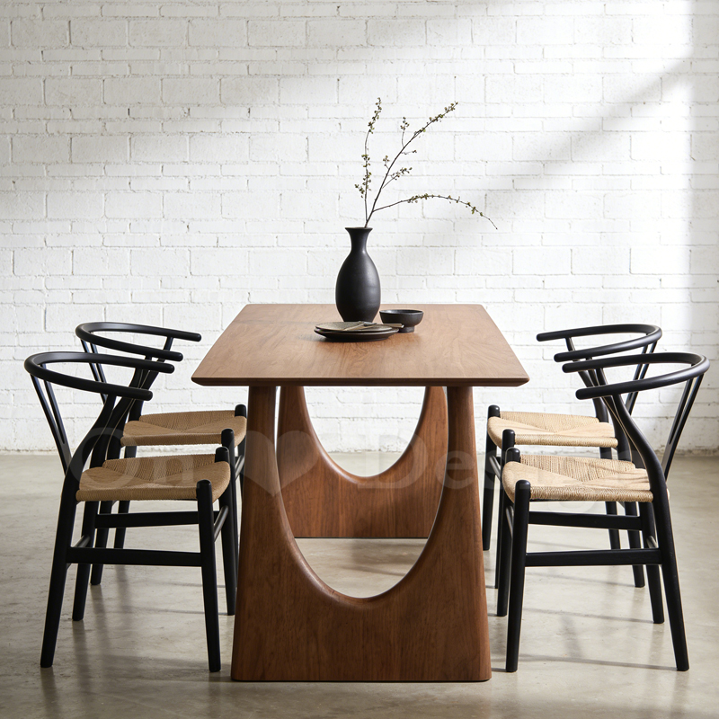 實木腳 微笑 餐桌 胡桃色-200 CM