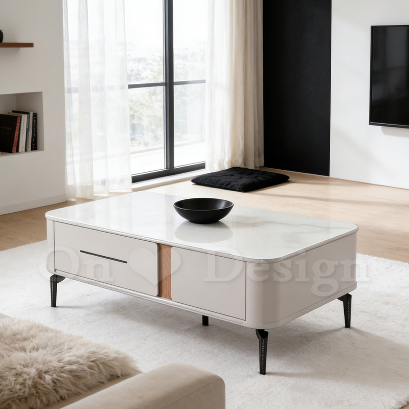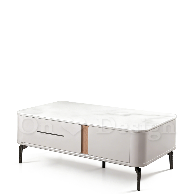 米亞 大理石紋 玻璃 帶抽屜 茶几-130 CM