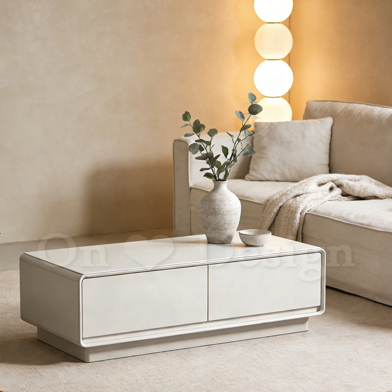 雙邊都有抽屜,純白的線條,簡單又充滿設計感, 把視覺雜訊全部收乾淨;