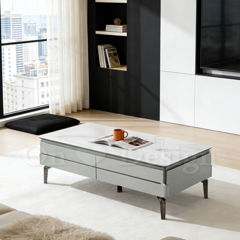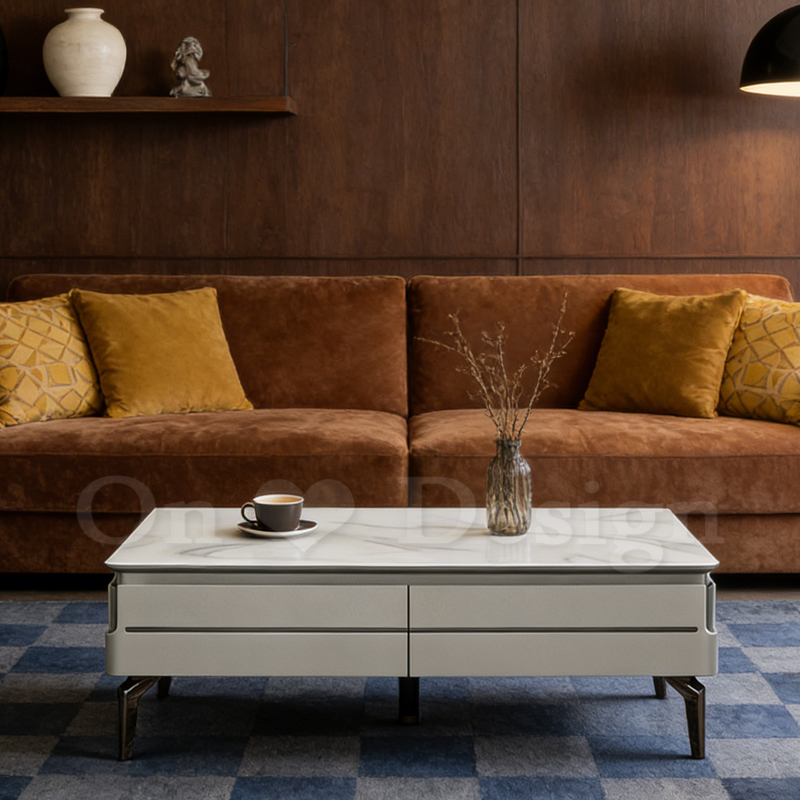 雅格 大理石紋 玻璃 帶抽屜 茶几-130 CM