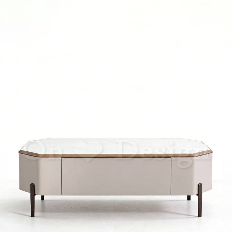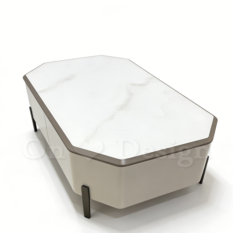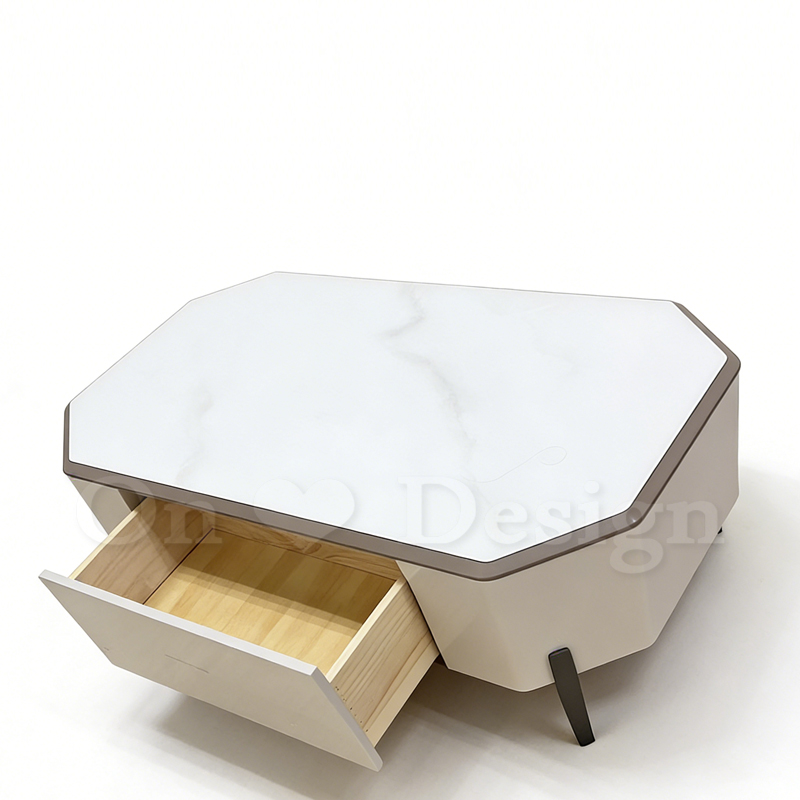 莫克爾 大理石紋 玻璃 帶抽屜 茶几-130 CM