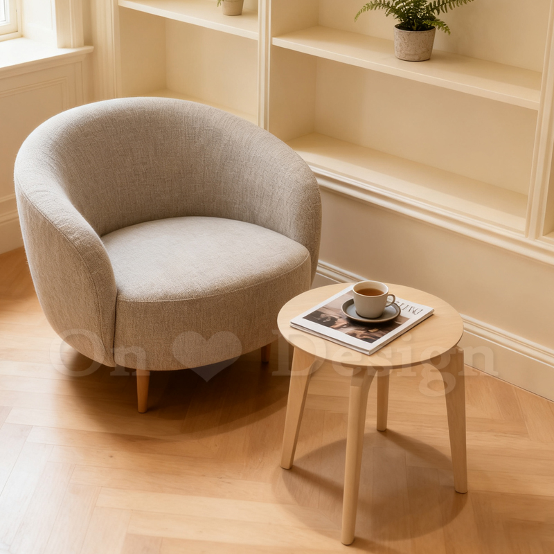 簡單的圓形造型,配上簡約的洗白色桌腳,簡單又充滿設計感。 可當小茶几 或者邊几使用。