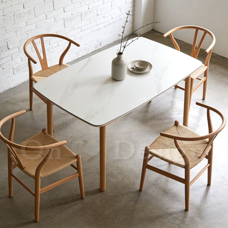蘿莉 馬肚 岩板 實木腳 餐桌 -130CM
