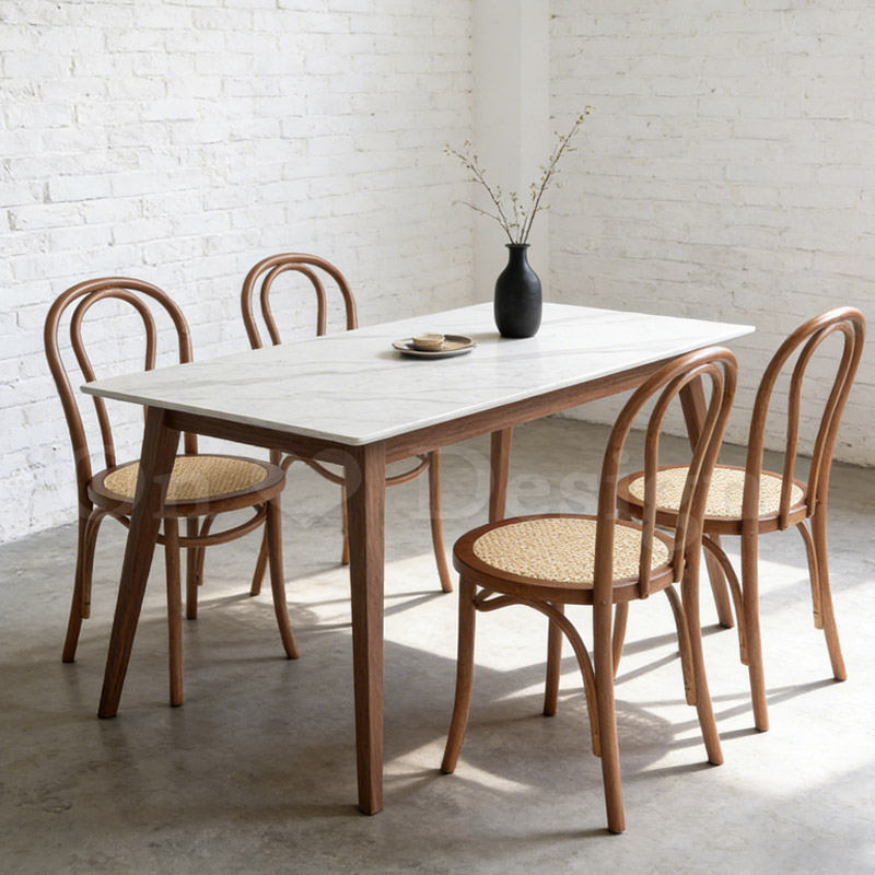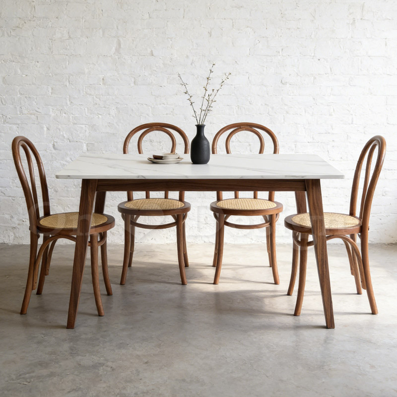 凱恩 大理石 胡桃實木腳 餐桌 -四種尺寸