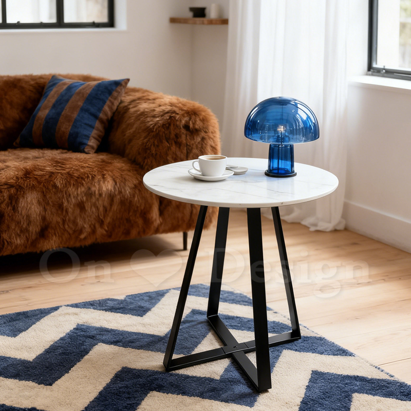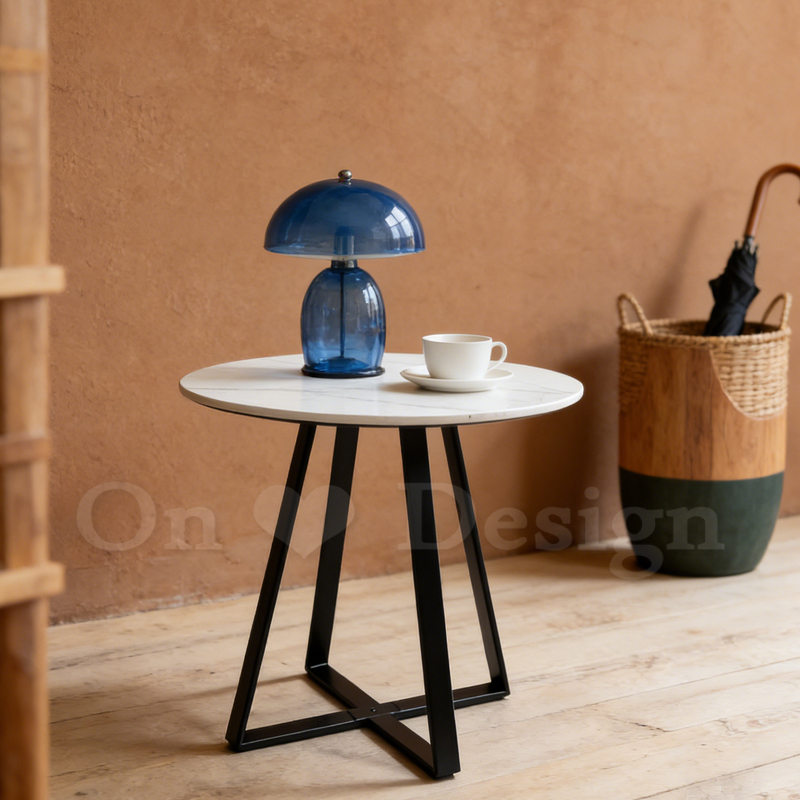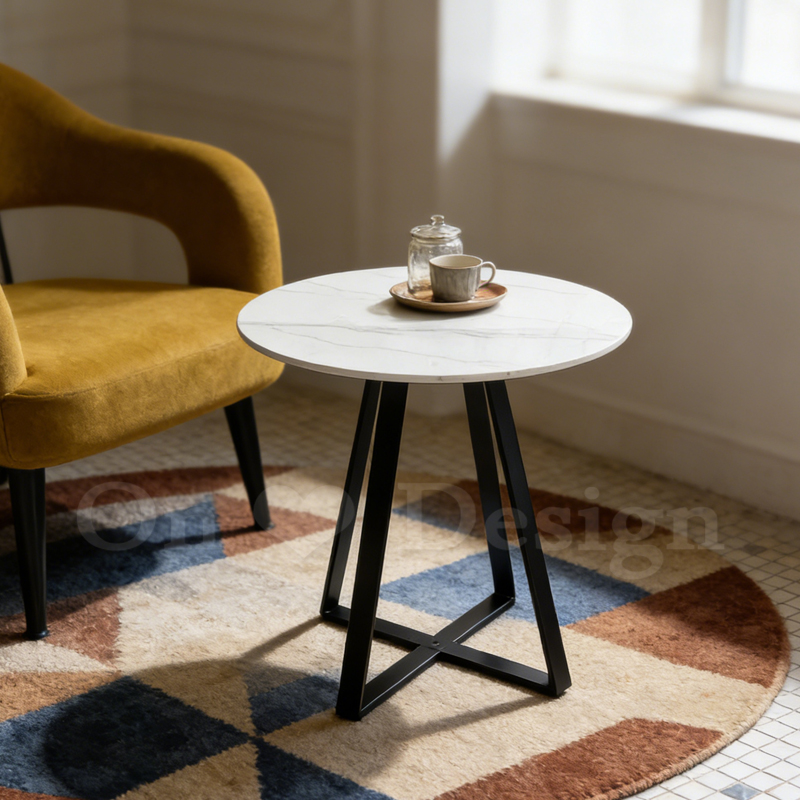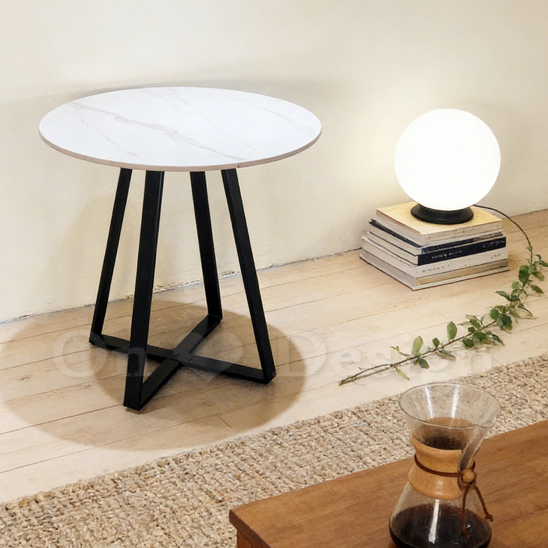 美式 客廳 咖啡桌 邊桌 十字 大理石紋 岩板 邊几 -60CM