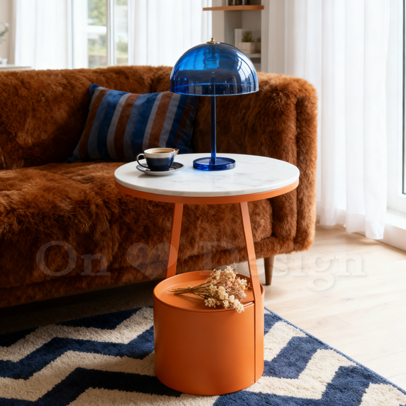 美式 客廳 邊桌 大理石紋 岩板 置物 普普 托盤 邊几 橘色-45CM (附托盤)