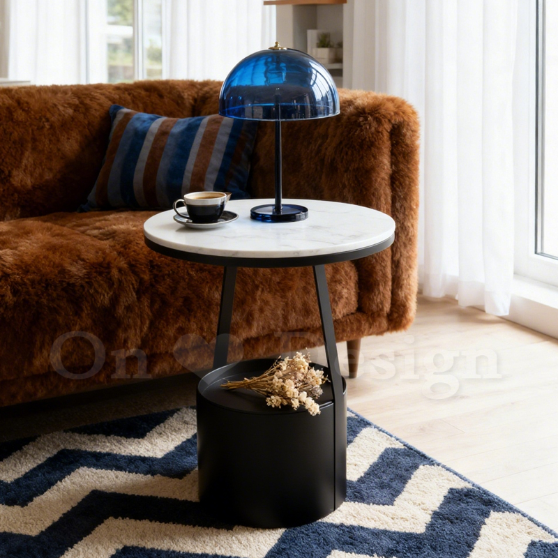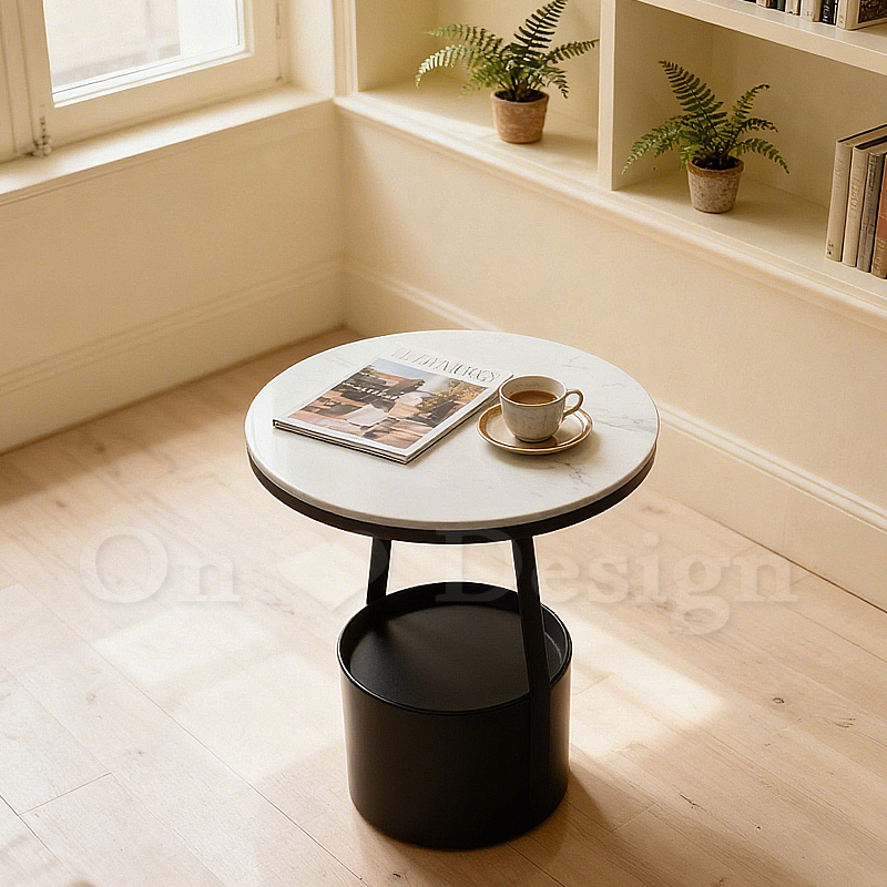 美式 客廳 邊桌 大理石紋 岩板 置物 普普 托盤 邊几 黑色-45CM (附托盤)