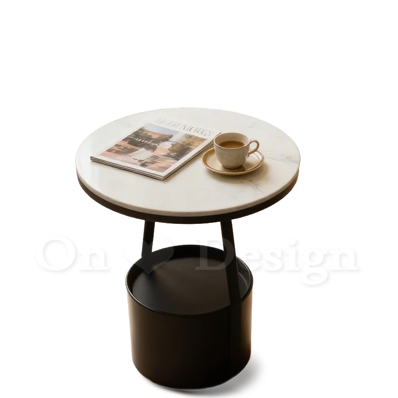 美式 客廳 邊桌 大理石紋 岩板 置物 普普 托盤 邊几 米色-45CM (附托盤)