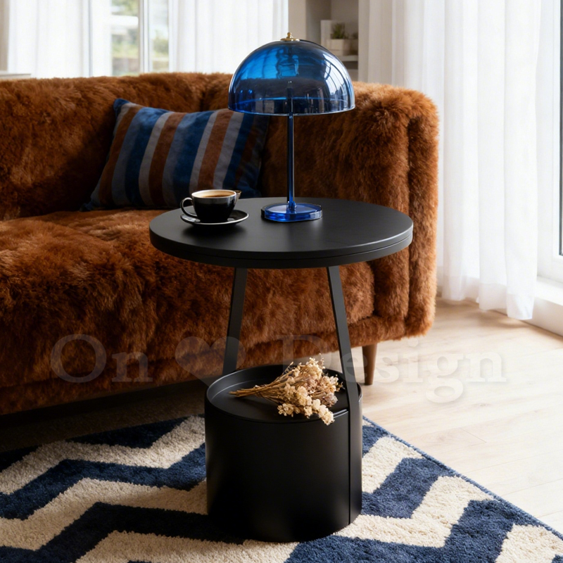 美式 客廳 邊桌 黑色 岩板 置物 普普 托盤 邊几 黑色-45CM (附托盤)