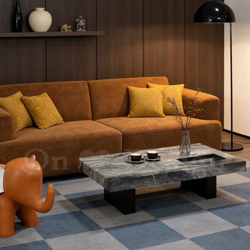 岩板特有耐磨耐高溫好打理 ,讓咖啡漬一擦乾淨,簡單打理,簡約的黑色桌腳,簡單又充滿設計感。大理石紋岩石面帶給空間不凡的高貴視覺饗宴,適合美式奢華風 簡約的客廳風格。