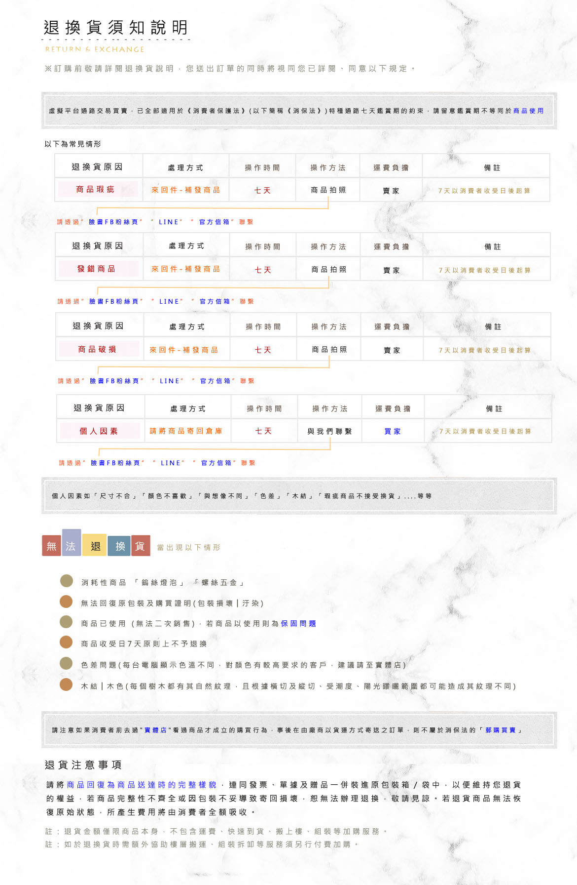 退換貨說明